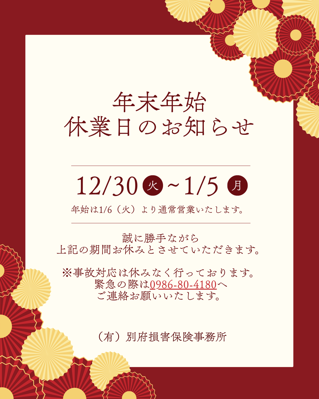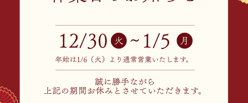 年末年始休暇のお知らせ